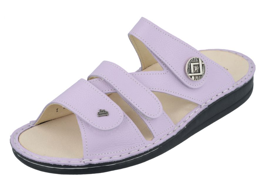 FinnComfortin Agueda-mallin sandaalin saa tukevasti jalkaan kolmella tarrakiinnitteisellä remmillä. Siinä on leveä lesti. Päällinen on valmistettu korkealaatuisesta nahasta ja pohja on valmistettu kestävästä polyuretaanista (PU). Sandaalin kantakorkeus on 12 mm. Sandaalissa on irrotettava ja vaihdettava korkki-lateksipohjallinen. Mahdollisuus käyttää omaa yksilöllistä pohjallista.